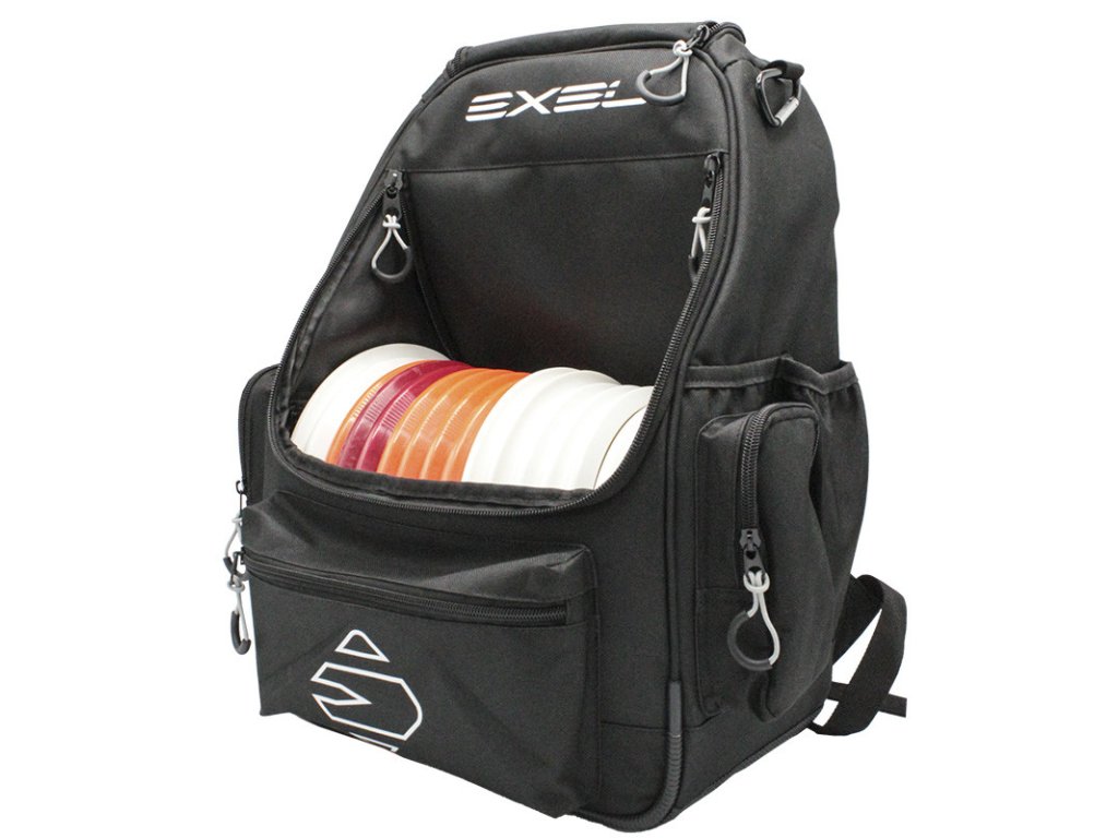 Středně velký batoh na disky EXEL E-2, kde se do hlavní kapsy batohu se vejde cca 20 disků na diskgolf a do velkých bočních kapes se vejdou 2-3 disky.